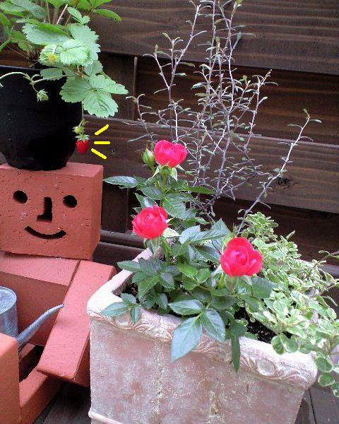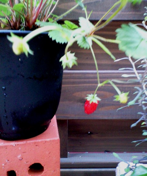 小さい白い花が咲いた後、本当にいちごがなったー!(@@