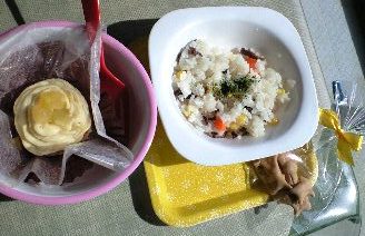 オラは、馬肉入りリゾットとサツマイモケーキ